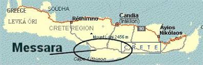 Il y avait une autre demeure princière à l'Ouest de Phaistos à Aghia Triada[photo] à 66 km au Sud Ouest d'Héraklion,sur une petite éminence ,d'où l'on voit au loin la mer.Datant de 1600 av JC environ,cette construction minoenne à trois ailes,dans laquelle on a trouvé de superbes fresques [aujourd'hui au Musée Archéologique d'Héraklion],occupe un site charmant à l'ouest de la pleine de Messara,près du palais minoen de Festos [66km au sud d'Héraklion].Entrée payante.A 4 km d'Aghia Triada,Tymbaki est une grosse bourgade de la Crète méridionale,au Sud de laquelle se trouve Matala plage enchanteresse mondialement connue à 70 km d'Héraklion.