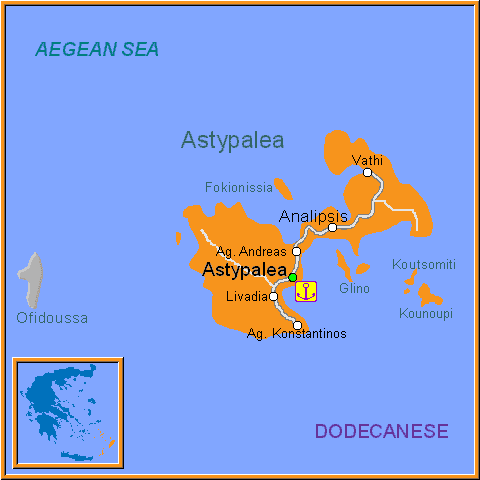 Plus proche des Cyclades que des autres îles du Dodécanèse,Astypalea est situé entre Amorgos,Anafi et Kalymnos.Elle est connue aussi sous le nom de Stampalia ou Astypalia,qui datent de l'occupation vénitienne de l'île.L'île est montagneuse et constituè de deux parties Sud et Nord.Les côtes sont très découpées avec nombre des golfes et de criques.La capitale de l'île est Astypalea et c'est d'ici qu'on peut visiter les quelques villages de l'intérieur dont bl'habitat est très disséminé.Son port est Pera Yalos.Astypalea avec sa vie tranquille ,sa fortresse,ses beaux rivages,et ses petits ports,se prête à des vacances paisibles,loin de la cohue touristique.